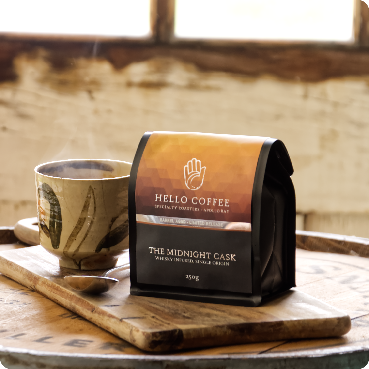 The Midnight Cask is Australia’s most trusted whisky-infused coffee, roasted fresh each week in Apollo Bay. We capture a natural whisky-oak aroma with 0% alcohol, roasted into a balanced, specialty-grade coffee. Crafted every week by a local roaster Australians know and rely on.